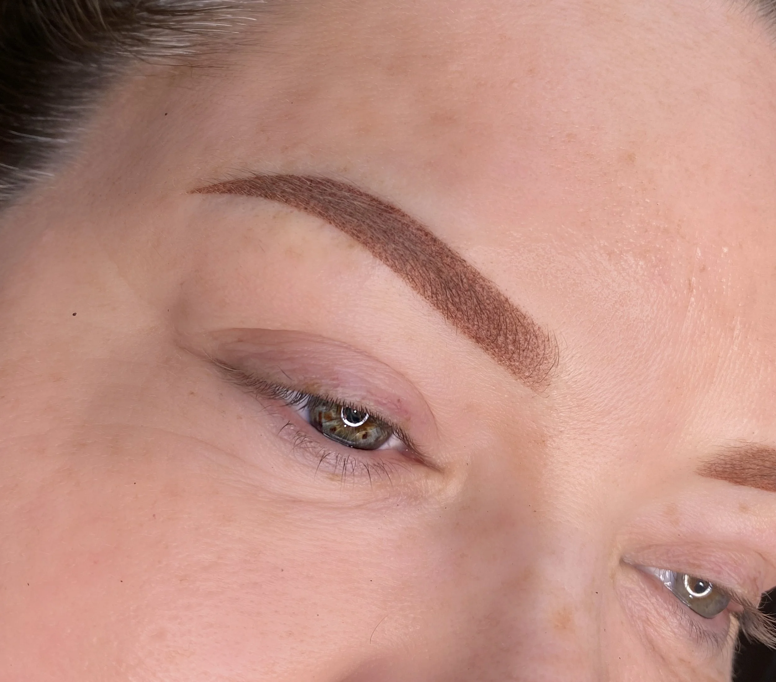 Combination brows immediately after the initial session. Brows will shrink by 30% and soften by 40% in color during the healing process.